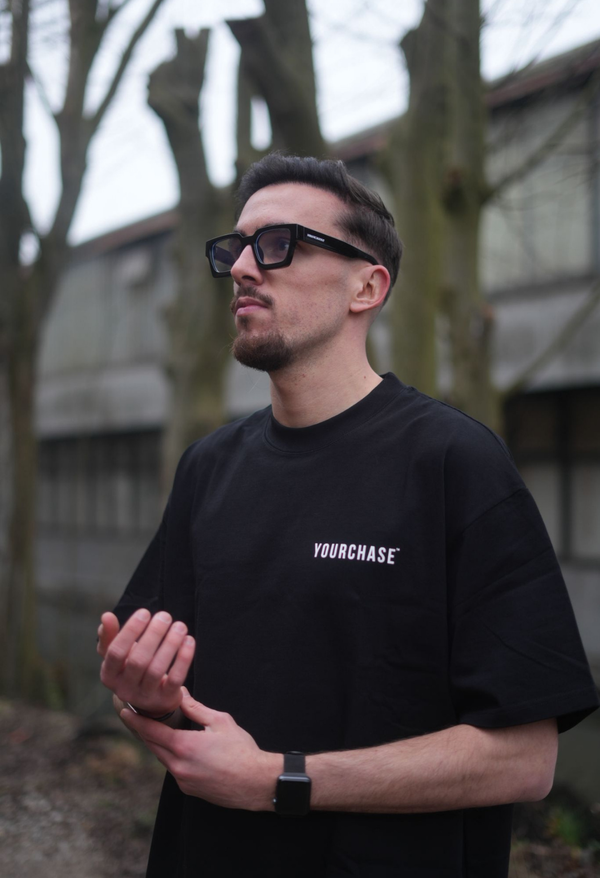 Made from high-quality polished acetate Thick black frame with deep Black lenses Oversized YOURCHASE logo on the temples 100% UV protection Comes with a premium acetate case with embossed YOURCHASE...