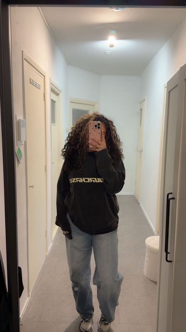 Heavyweight cotton longsleeve with a washed black finish.Designed with an oversized silhouette. Features YOURCHASE™ branding across the chest and sleeve.Embroidered Angel detail at the chest.Small embroidered “25” placed at the...